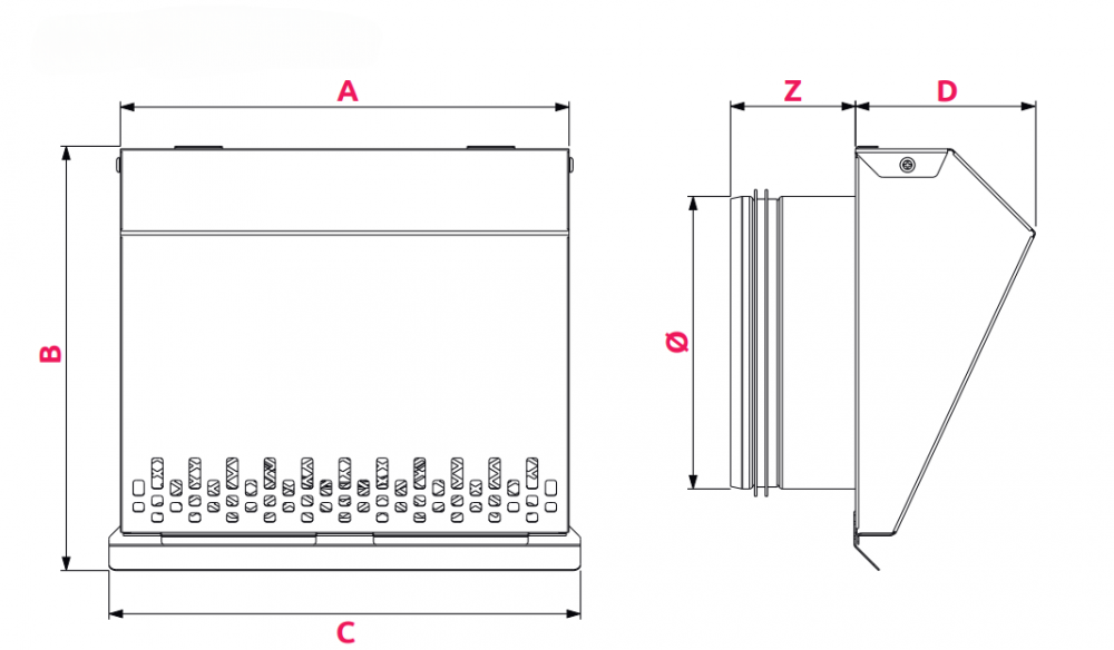 Dankzij de ingebouwde druppelafleider blijft jouw gevel beschermd tegen waterschade, terwijl het beschermende gaas de ventilatieopening veilig afdekt. De unieke geometrie van de kap minimaliseert luchtweerstand, wat zorgt voor een efficiënte luchtafvoer zonder drukverlies. Met de rubberen afdichting voorkom je luchtlekkage, en de montagegaten in de hoeken maken de installatie eenvoudig en betrouwbaar.
